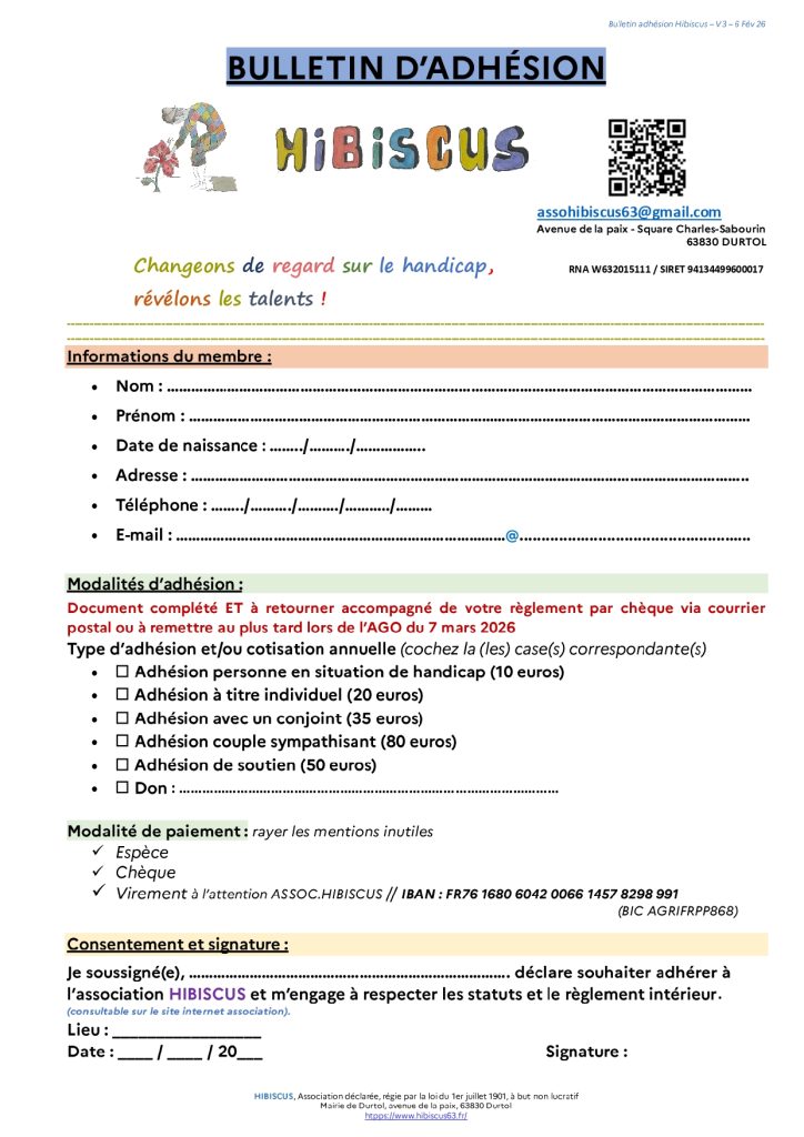 HIBISCUS est une association loi 1901, établie en décembre 2024 à Clermont-Ferrand, Puy-de-Dôme) en région Auvergne Rhône Alpes. Notre association s’engage dans le domaine de l’insertion sociale et éducative des personnes en situation de handicap et de leur entourage.